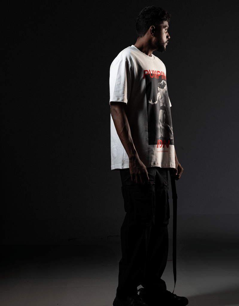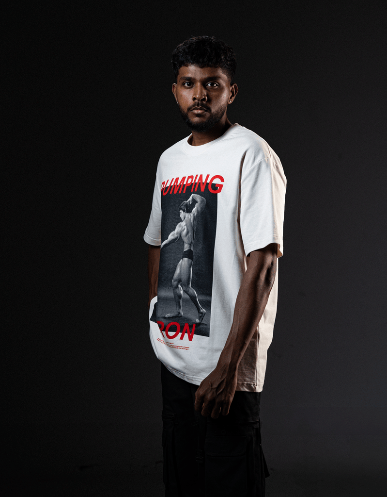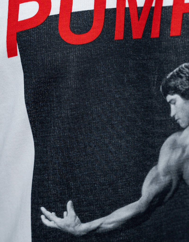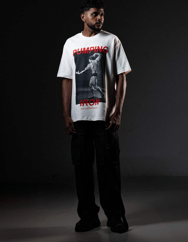 The person on the T-shirt is Arnold Schwarzenegger, the legendary Austrian bodybuilder, actor, and former Governor of California. The text “Pumping Iron” refers to the famous 1977 documentary film about bodybuilding, where Arnold played a central role. This movie not only showcased his dominance in bodybuilding competitions but also made him a global icon, eventually leading to his acting career (The Terminator being his most famous role).