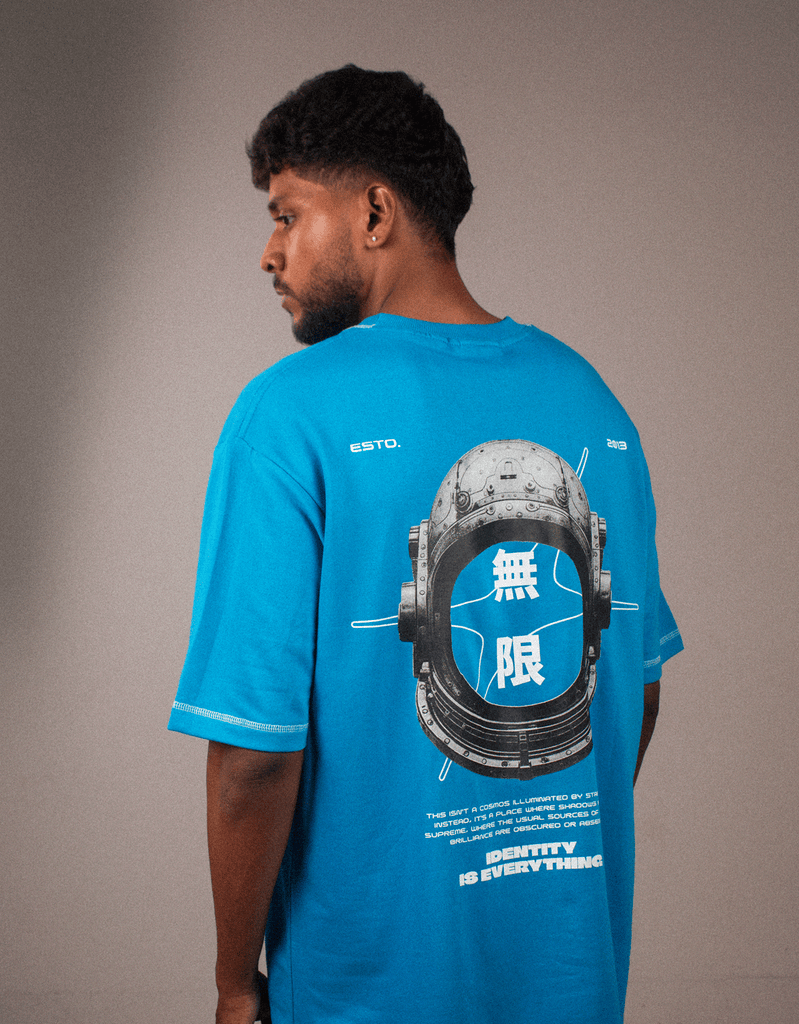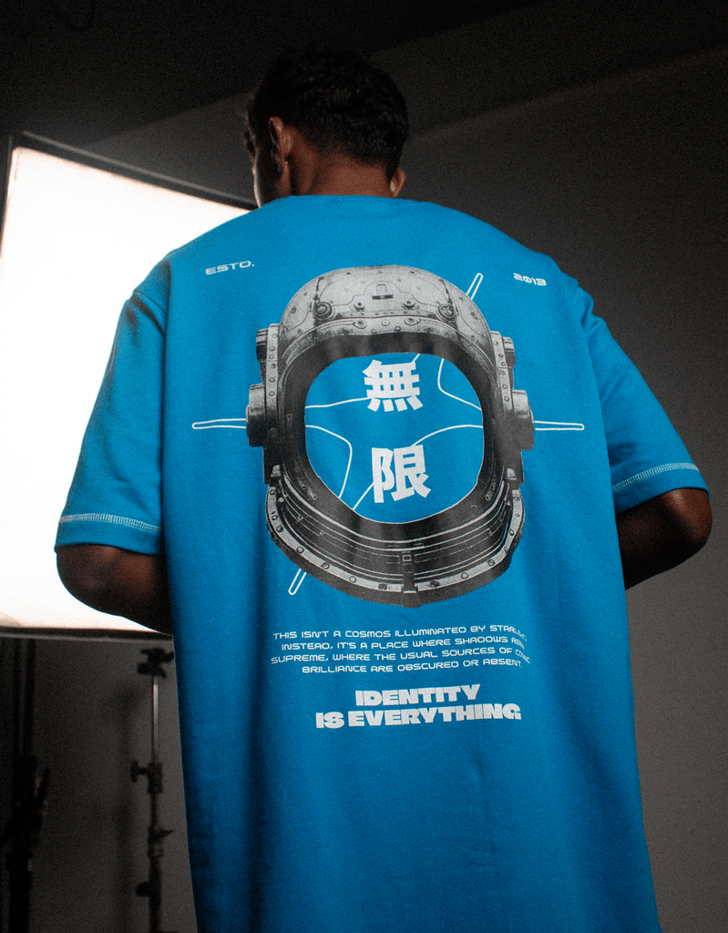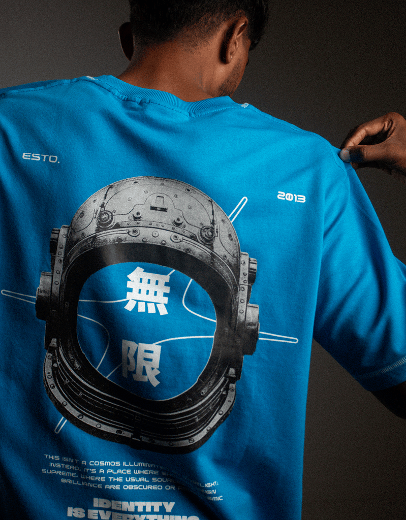 The artwork represents a fusion of streetwear and sci-fi culture. The astronaut helmet symbolizes exploration, curiosity, and pushing boundaries. The word “Infinity” (無限) adds a philosophical depth, suggesting limitless possibilities and human potential.