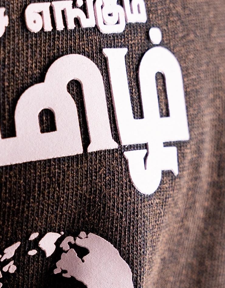 The phrase “திசை எவையும் தமிழ்” translates to “Tamil is in every direction,” reflecting the widespread influence of Tamil culture across the globe. This design thoughtfully showcases bold Tamil typography layered over a detailed world map. Arrows radiate outward from the center, symbolizing the far-reaching presence and impact of Tamil heritage. Wearing this T-shirt is a way to proudly celebrate and share the richness of Tamil identity wherever you go.