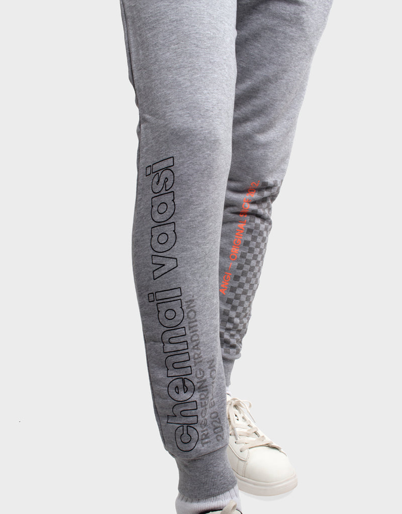 Chennai Vaasi graphic track pants are made of loop knit polycotton bio-washed fabric. This 350 GSM track pant will be your perfect athleisure. And what better way to represent your love for the city of Chennai?