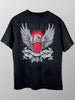 This T-shirt features the iconic Led Zeppelin logo along with a striking graphic of a winged figure, often associated with Icarus from Greek mythology. The design is inspired by the logo of Swan Song Records, the record label founded by the band in 1974. The image is actually based on a 19th-century artwork by William Rimmer titled Evening (The Fall of Day). It symbolizes ambition, freedom, and the tragic fall—much like the story of Icarus. The distressed texture and faded tones give the tee a vintage, rock-n-roll aesthetic. This design is a tribute to one of the greatest rock bands in history.